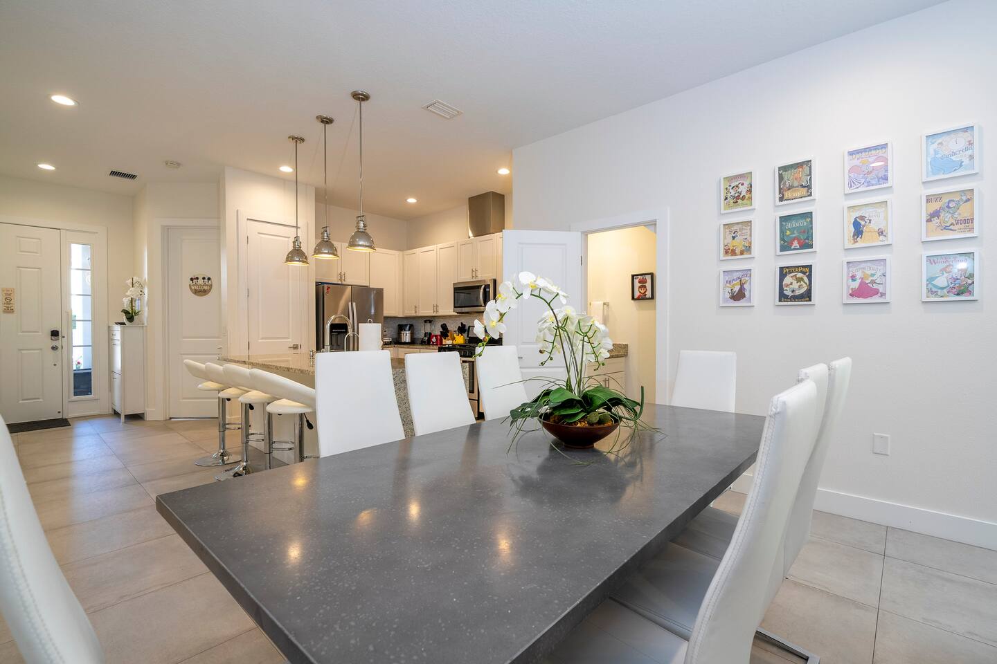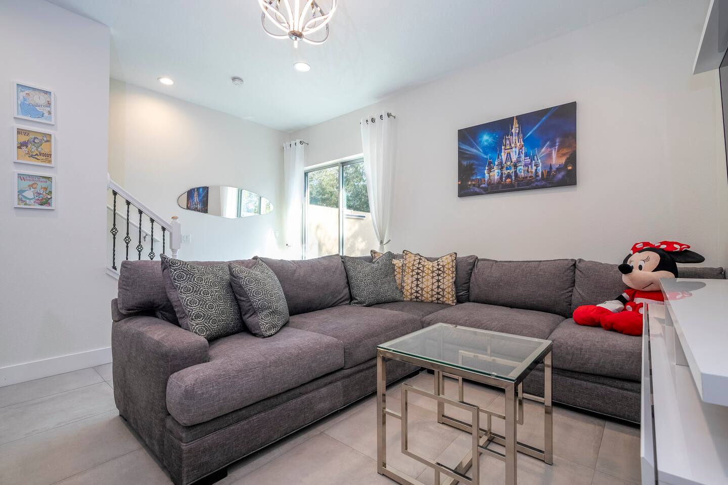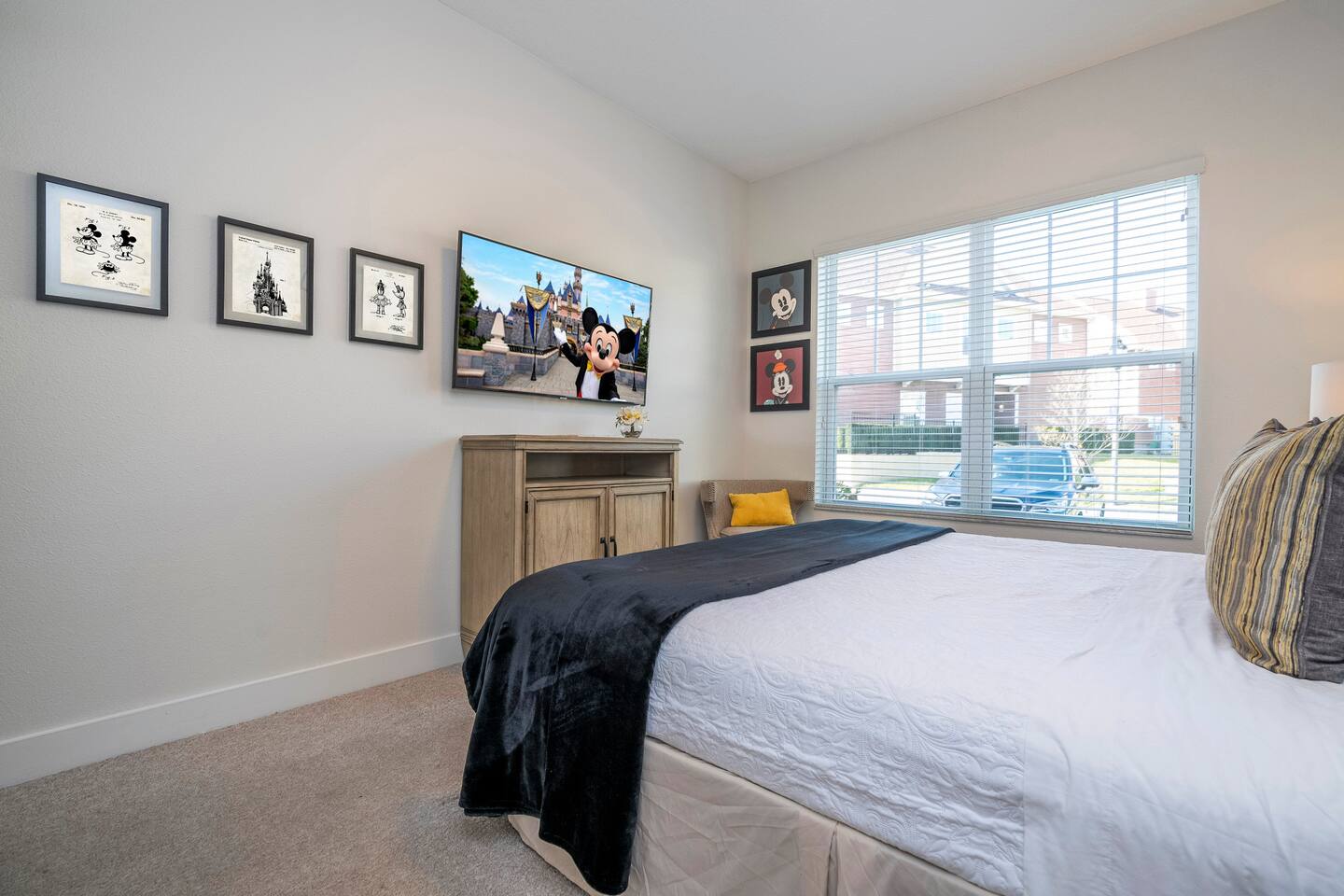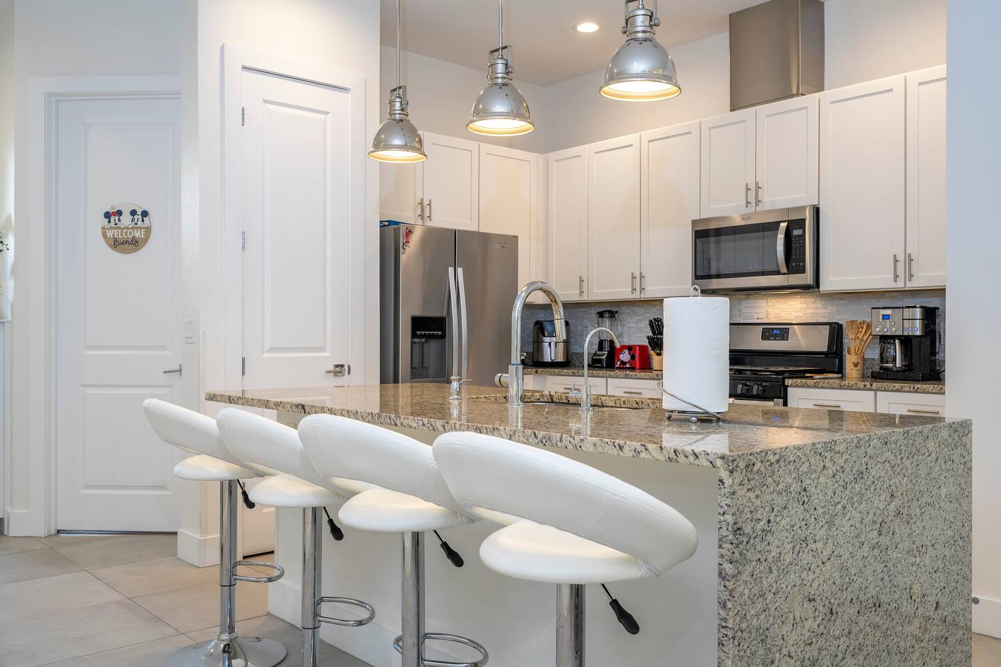 Welcome to Our Disne Vaction home, our 4 Bedrooms, 3 king size beds with Privite Bathroom for each bedroom. Our giant comfortable Cindy Crawford sofa will snuggle you in for Tv time, the tv downstairs has nanomid player, with all movies and tv series availiable. You are also welcome to use our Disney and hulu loged in already. We will provide 1 Paper towel, 2 kitchen towel, 4 trash bags, 2 toilet paper per bathroom, 1 bath towel per guest, 1 hand towel per bathroom, travel size toiletries. We have a 7 stages reverse osmosis filter alkaline water for drinking water, so no need to buy water while staying with us. Laundry is availible for guest use. Our coffee machine is for filter coffee and K-cups. We also have a Mickey and Friends waffle maker, you can buy the mix and make it for kids, they will sure love it. The playground is right in front of the house, and the GYM and playroom is together perfect for parents to exercise while kids play. You are welcome to have deliviries, please note that usps does not delivery in our door due to being a vacation community. But amazon, supermarkets, food delivery does. Pool is heated and jacuzzi makes it relaxing after parks, Enjoy!!!! In unit laundry Parking in front of the property Baby bassinet 2 Crib Availiable High Chair kids dinnerware Child seat Booster Infant Bathtub 7 stages water filter alkaline water for drinking Fully equipped kitchen, airfrer, toaster, waffle maker, ceramic pots for cooking, microwave, oven, gas stove, serving dishes, BBQ, wine glass, kids plates etc.