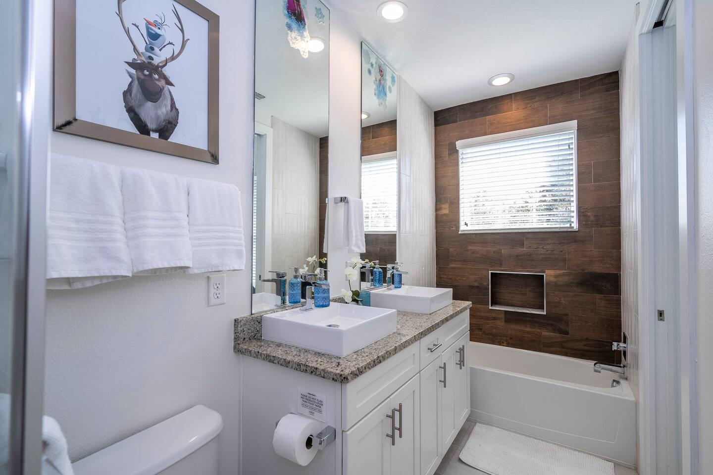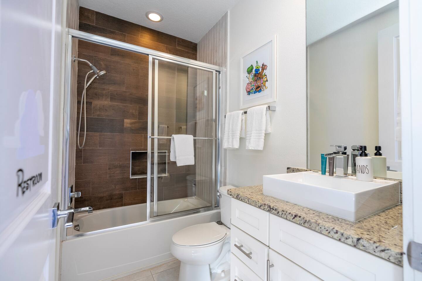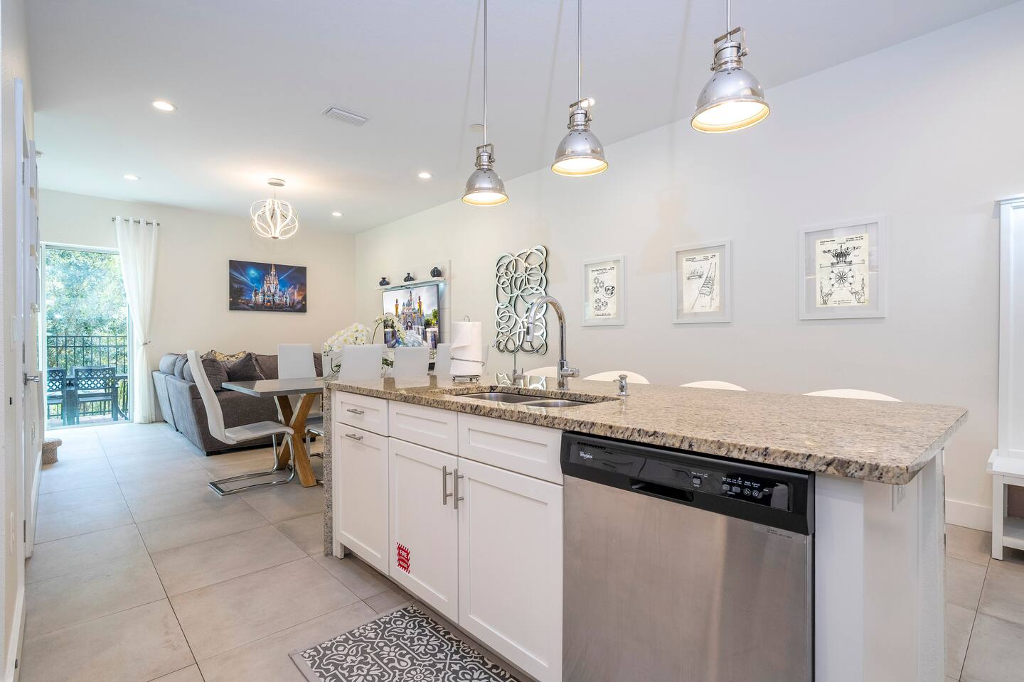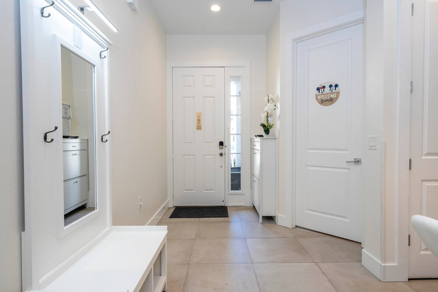 Welcome to Our Disne Vaction home, our 4 Bedrooms, 3 king size beds with Privite Bathroom for each bedroom. Our giant comfortable Cindy Crawford sofa will snuggle you in for Tv time, the tv downstairs has nanomid player, with all movies and tv series availiable. You are also welcome to use our Disney and hulu loged in already. We will provide 1 Paper towel, 2 kitchen towel, 4 trash bags, 2 toilet paper per bathroom, 1 bath towel per guest, 1 hand towel per bathroom, travel size toiletries. We have a 7 stages reverse osmosis filter alkaline water for drinking water, so no need to buy water while staying with us. Laundry is availible for guest use. Our coffee machine is for filter coffee and K-cups. We also have a Mickey and Friends waffle maker, you can buy the mix and make it for kids, they will sure love it. The playground is right in front of the house, and the GYM and playroom is together perfect for parents to exercise while kids play. You are welcome to have deliviries, please note that usps does not delivery in our door due to being a vacation community. But amazon, supermarkets, food delivery does. Pool is heated and jacuzzi makes it relaxing after parks, Enjoy!!!! In unit laundry Parking in front of the property Baby bassinet 2 Crib Availiable High Chair kids dinnerware Child seat Booster Infant Bathtub 7 stages water filter alkaline water for drinking Fully equipped kitchen, airfrer, toaster, waffle maker, ceramic pots for cooking, microwave, oven, gas stove, serving dishes, BBQ, wine glass, kids plates etc.