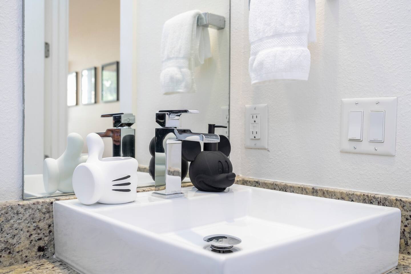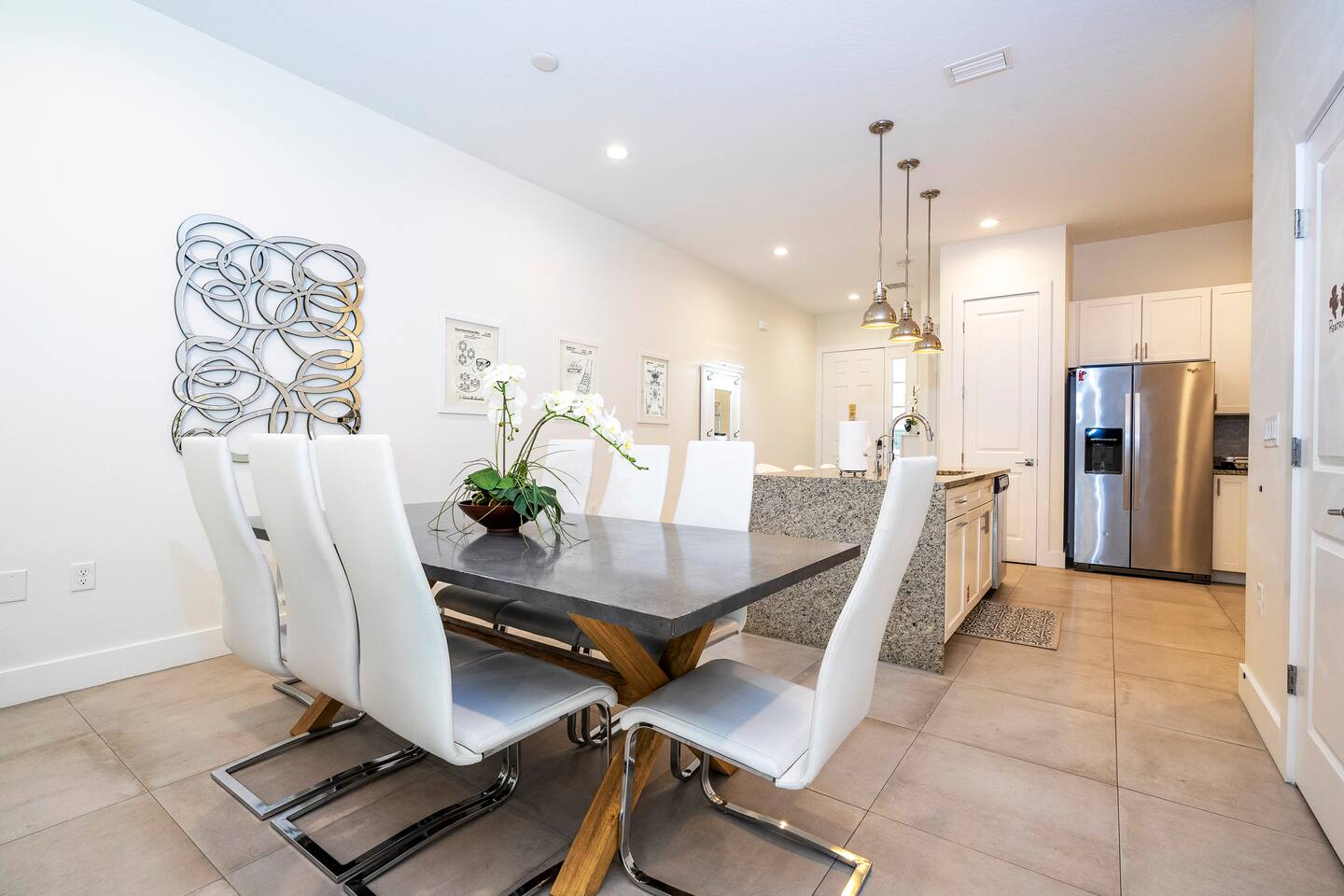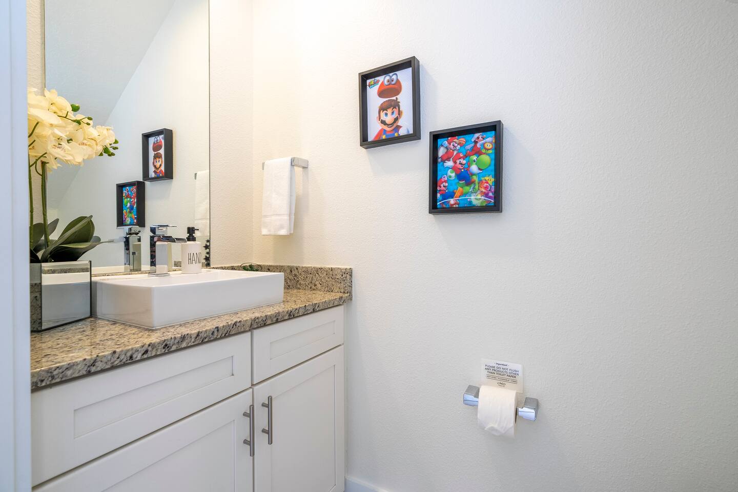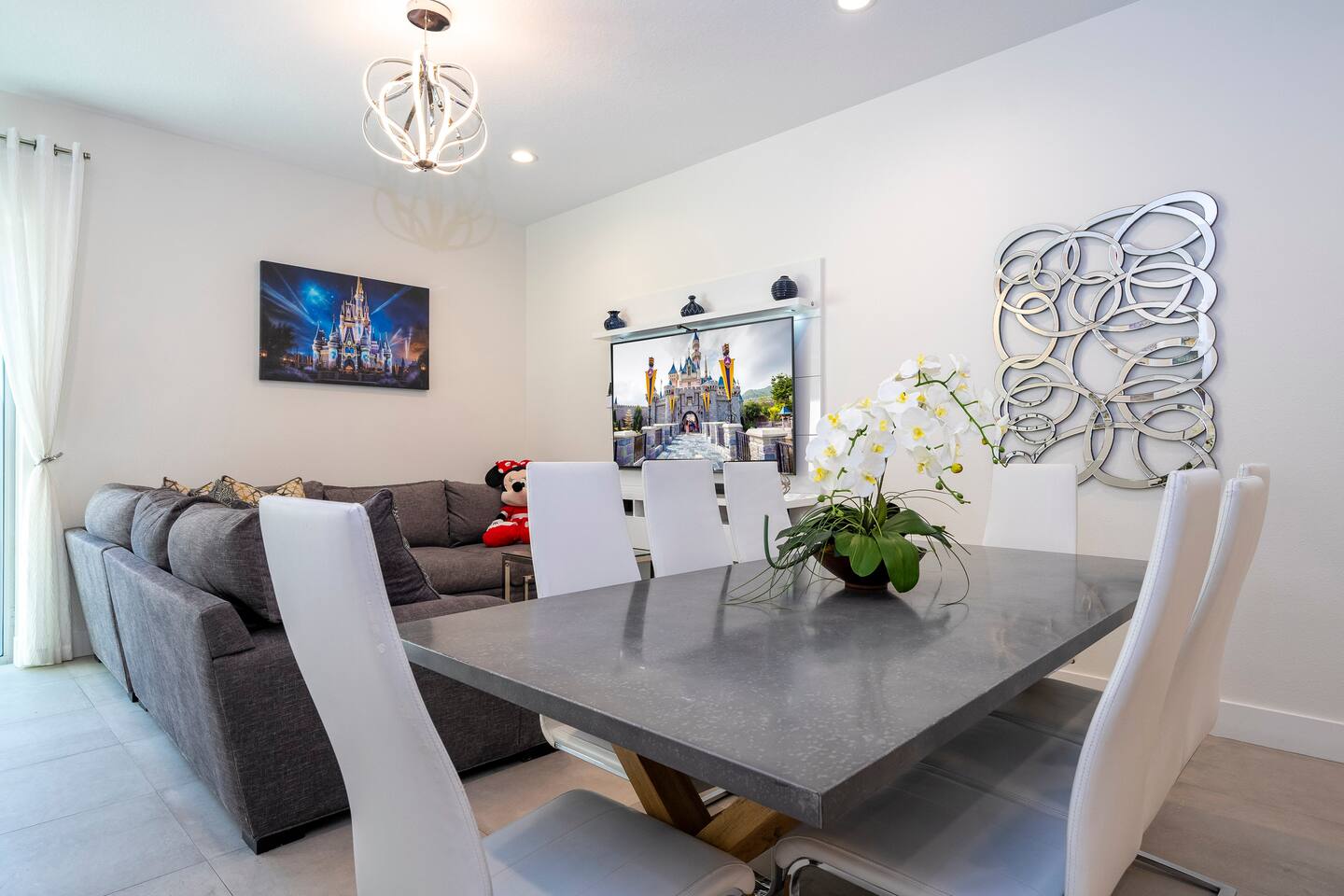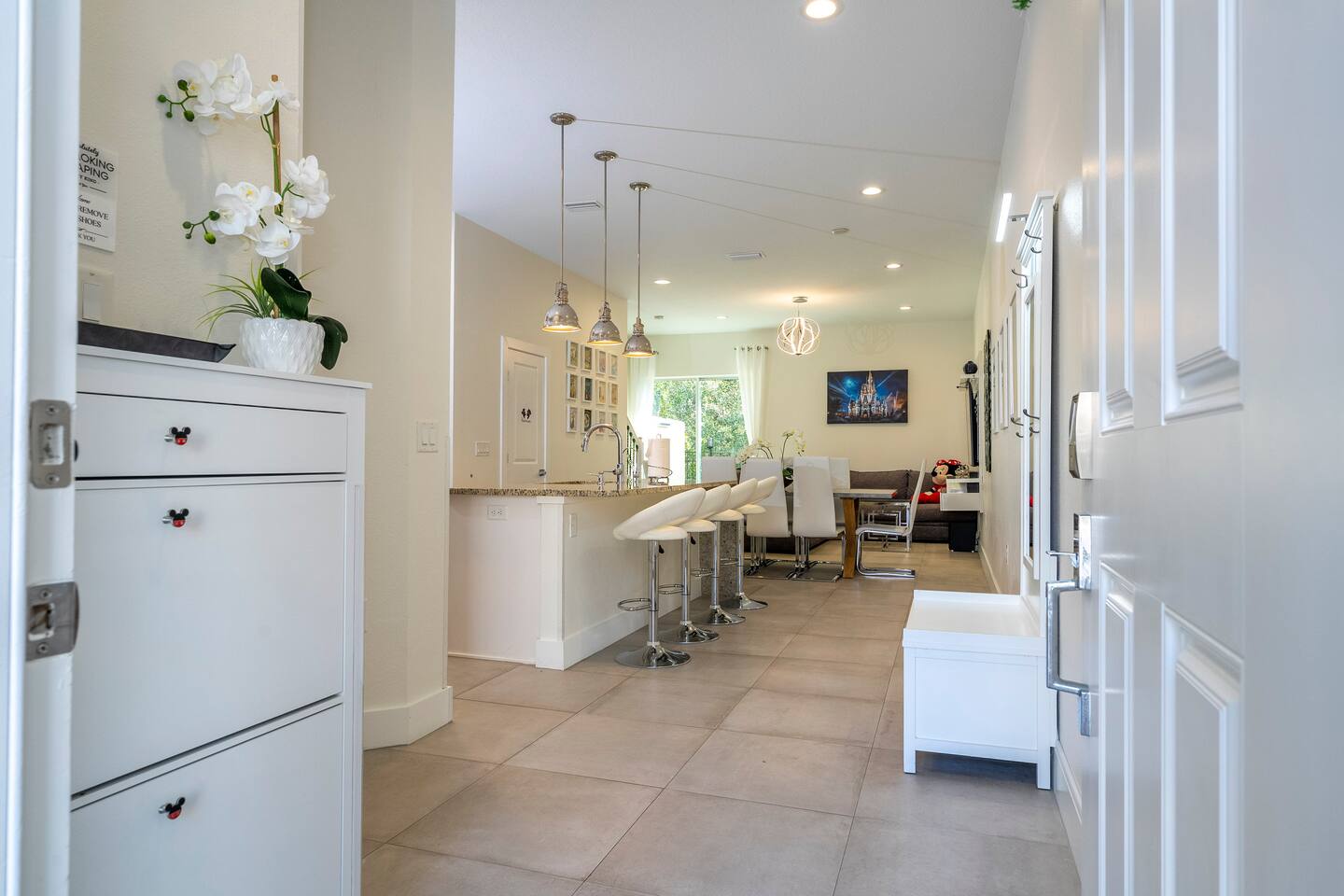 Welcome to Our Disne Vaction home, our 4 Bedrooms, 3 king size beds with Privite Bathroom for each bedroom. Our giant comfortable Cindy Crawford sofa will snuggle you in for Tv time, the tv downstairs has nanomid player, with all movies and tv series availiable. You are also welcome to use our Disney and hulu loged in already. We will provide 1 Paper towel, 2 kitchen towel, 4 trash bags, 2 toilet paper per bathroom, 1 bath towel per guest, 1 hand towel per bathroom, travel size toiletries. We have a 7 stages reverse osmosis filter alkaline water for drinking water, so no need to buy water while staying with us. Laundry is availible for guest use. Our coffee machine is for filter coffee and K-cups. We also have a Mickey and Friends waffle maker, you can buy the mix and make it for kids, they will sure love it. The playground is right in front of the house, and the GYM and playroom is together perfect for parents to exercise while kids play. You are welcome to have deliviries, please note that usps does not delivery in our door due to being a vacation community. But amazon, supermarkets, food delivery does. Pool is heated and jacuzzi makes it relaxing after parks, Enjoy!!!! In unit laundry Parking in front of the property Baby bassinet 2 Crib Availiable High Chair kids dinnerware Child seat Booster Infant Bathtub 7 stages water filter alkaline water for drinking Fully equipped kitchen, airfrer, toaster, waffle maker, ceramic pots for cooking, microwave, oven, gas stove, serving dishes, BBQ, wine glass, kids plates etc.