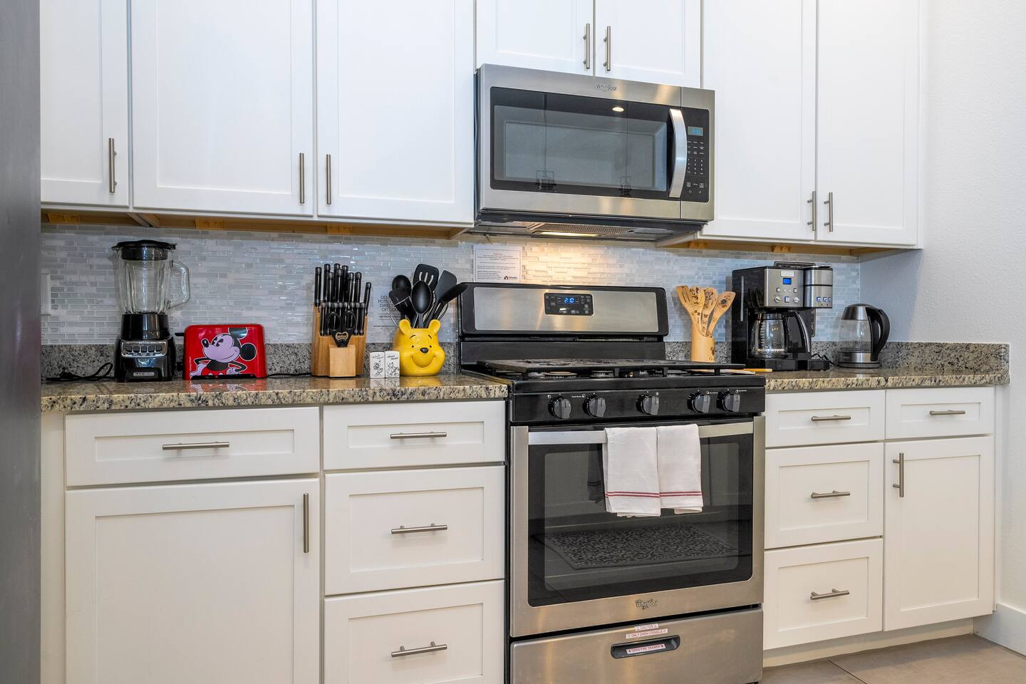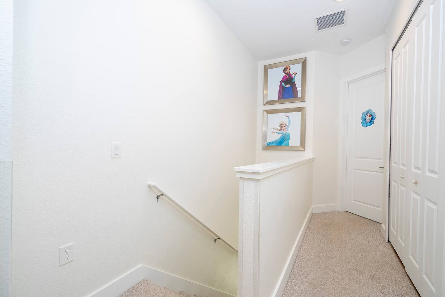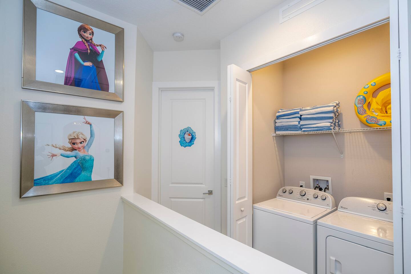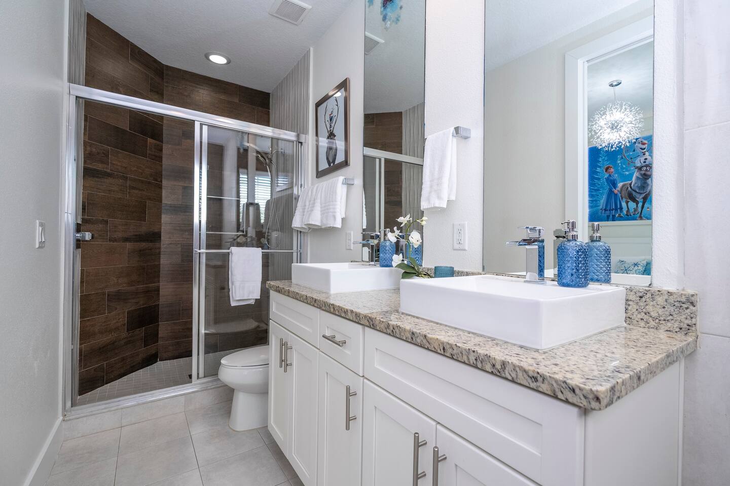 Welcome to Our Disne Vaction home, our 4 Bedrooms, 3 king size beds with Privite Bathroom for each bedroom. Our giant comfortable Cindy Crawford sofa will snuggle you in for Tv time, the tv downstairs has nanomid player, with all movies and tv series availiable. You are also welcome to use our Disney and hulu loged in already. We will provide 1 Paper towel, 2 kitchen towel, 4 trash bags, 2 toilet paper per bathroom, 1 bath towel per guest, 1 hand towel per bathroom, travel size toiletries. We have a 7 stages reverse osmosis filter alkaline water for drinking water, so no need to buy water while staying with us. Laundry is availible for guest use. Our coffee machine is for filter coffee and K-cups. We also have a Mickey and Friends waffle maker, you can buy the mix and make it for kids, they will sure love it. The playground is right in front of the house, and the GYM and playroom is together perfect for parents to exercise while kids play. You are welcome to have deliviries, please note that usps does not delivery in our door due to being a vacation community. But amazon, supermarkets, food delivery does. Pool is heated and jacuzzi makes it relaxing after parks, Enjoy!!!! In unit laundry Parking in front of the property Baby bassinet 2 Crib Availiable High Chair kids dinnerware Child seat Booster Infant Bathtub 7 stages water filter alkaline water for drinking Fully equipped kitchen, airfrer, toaster, waffle maker, ceramic pots for cooking, microwave, oven, gas stove, serving dishes, BBQ, wine glass, kids plates etc.