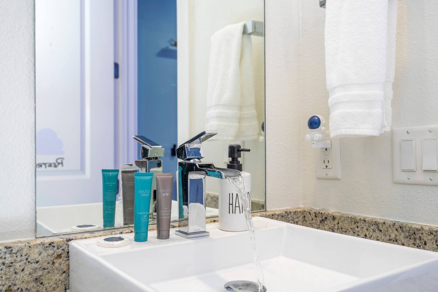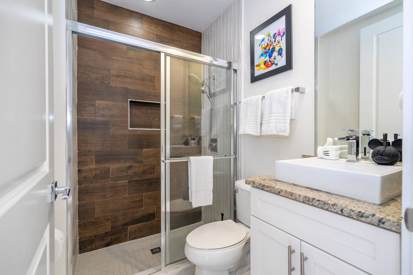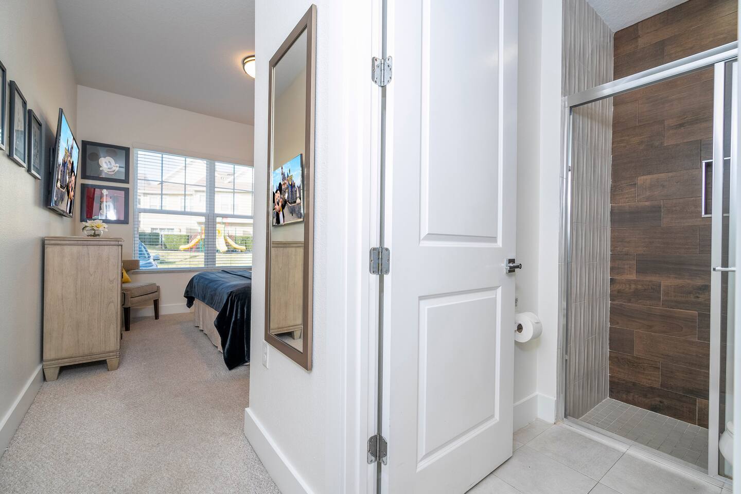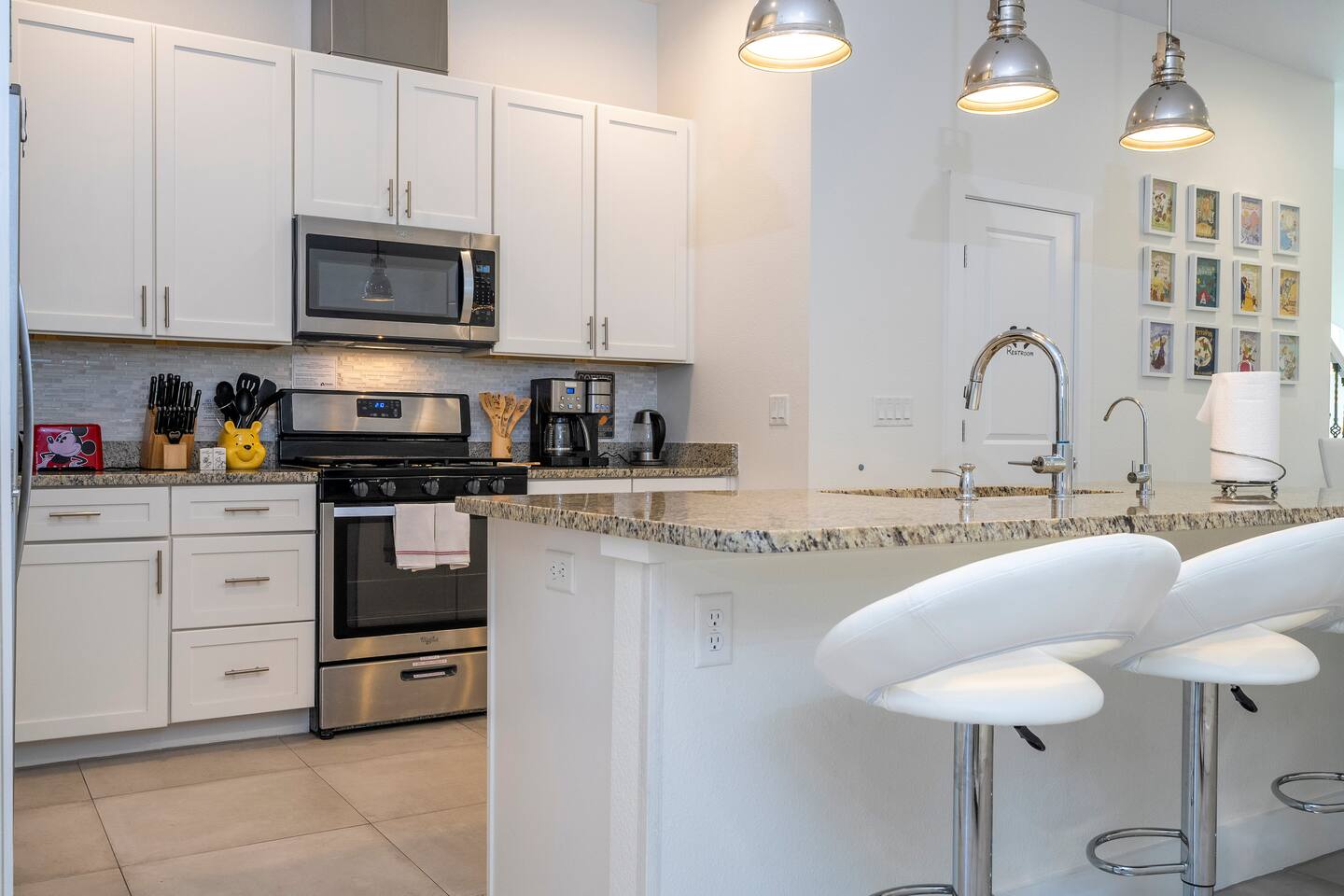 Welcome to Our Disne Vaction home, our 4 Bedrooms, 3 king size beds with Privite Bathroom for each bedroom. Our giant comfortable Cindy Crawford sofa will snuggle you in for Tv time, the tv downstairs has nanomid player, with all movies and tv series availiable. You are also welcome to use our Disney and hulu loged in already. We will provide 1 Paper towel, 2 kitchen towel, 4 trash bags, 2 toilet paper per bathroom, 1 bath towel per guest, 1 hand towel per bathroom, travel size toiletries. We have a 7 stages reverse osmosis filter alkaline water for drinking water, so no need to buy water while staying with us. Laundry is availible for guest use. Our coffee machine is for filter coffee and K-cups. We also have a Mickey and Friends waffle maker, you can buy the mix and make it for kids, they will sure love it. The playground is right in front of the house, and the GYM and playroom is together perfect for parents to exercise while kids play. You are welcome to have deliviries, please note that usps does not delivery in our door due to being a vacation community. But amazon, supermarkets, food delivery does. Pool is heated and jacuzzi makes it relaxing after parks, Enjoy!!!! In unit laundry Parking in front of the property Baby bassinet 2 Crib Availiable High Chair kids dinnerware Child seat Booster Infant Bathtub 7 stages water filter alkaline water for drinking Fully equipped kitchen, airfrer, toaster, waffle maker, ceramic pots for cooking, microwave, oven, gas stove, serving dishes, BBQ, wine glass, kids plates etc.