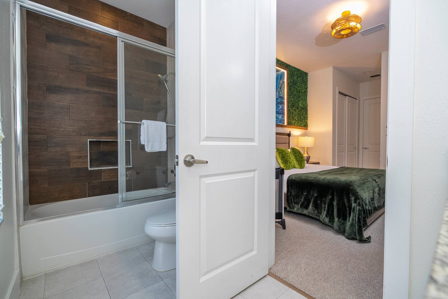 Welcome To your perfect stay ⭐️ Our 4 Ensuite Disney Themed Bedrooms Heated pool, Jacuzzi, Gym, Game room, Playground House BBQ garden 5 - 10 minutes away from Disney, Animal Kingdom, Epicot, Hollywood, Disney Springs Walmart and Starbucks walking distance. Target and Publix 5-10 minutes away 20 minutes to Universal Park and Icon 10 Minutes away to Sunset Walk, beautiful walk, entertainment, restaurants and shops. 15 min to Premium Outlets 5 minutes to Nike factory and New balanc